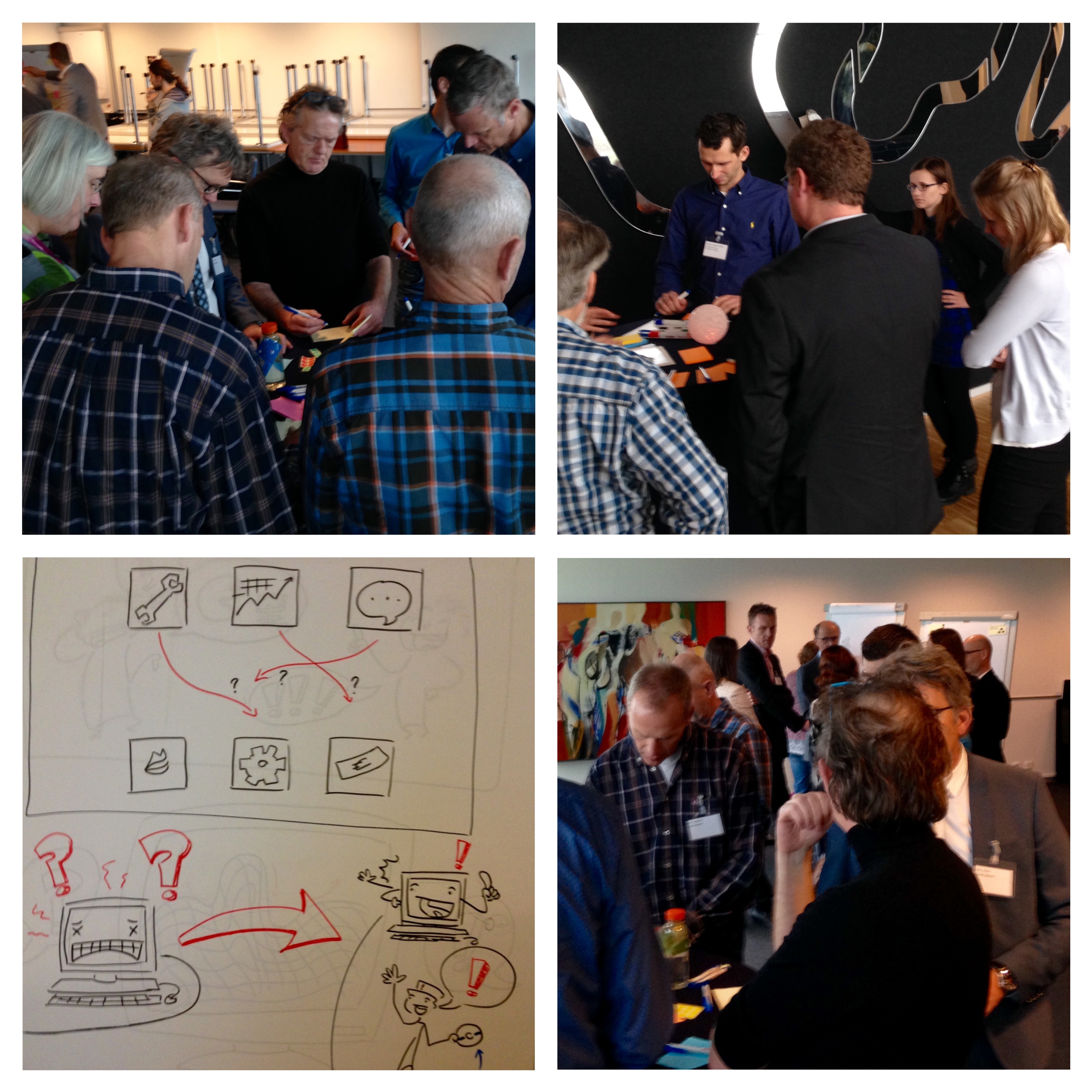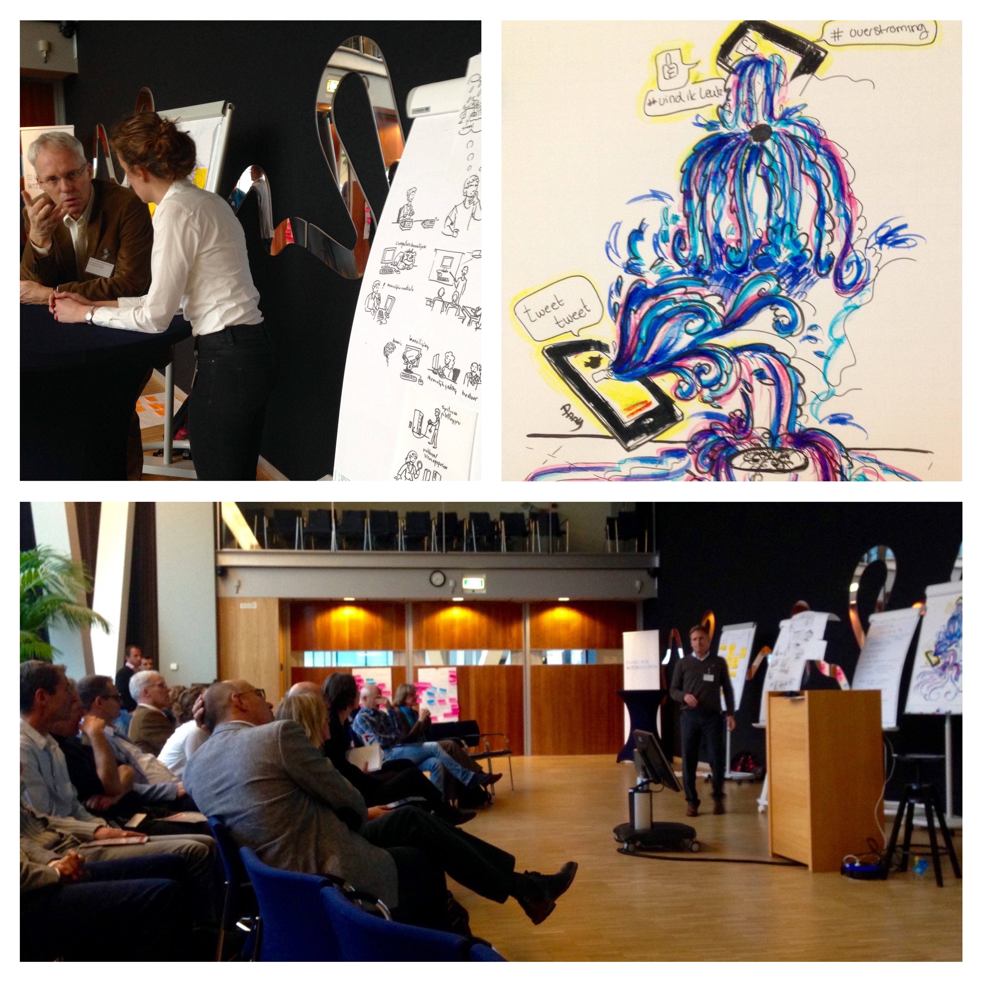 In groepjes gingen we aan de slag met deze zogenaamde ‘pre-mortem analyse’, die het gebruik van intuïtie en expert-judgement stimuleert. Studenten van Hogeschool Artez maakten ondertussen cartoons: hieronder een foto-impressie van de actieve workshop, met enthousiaste deelnemers en nuttige resultaten!